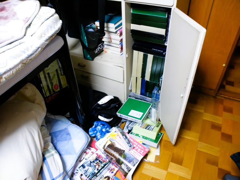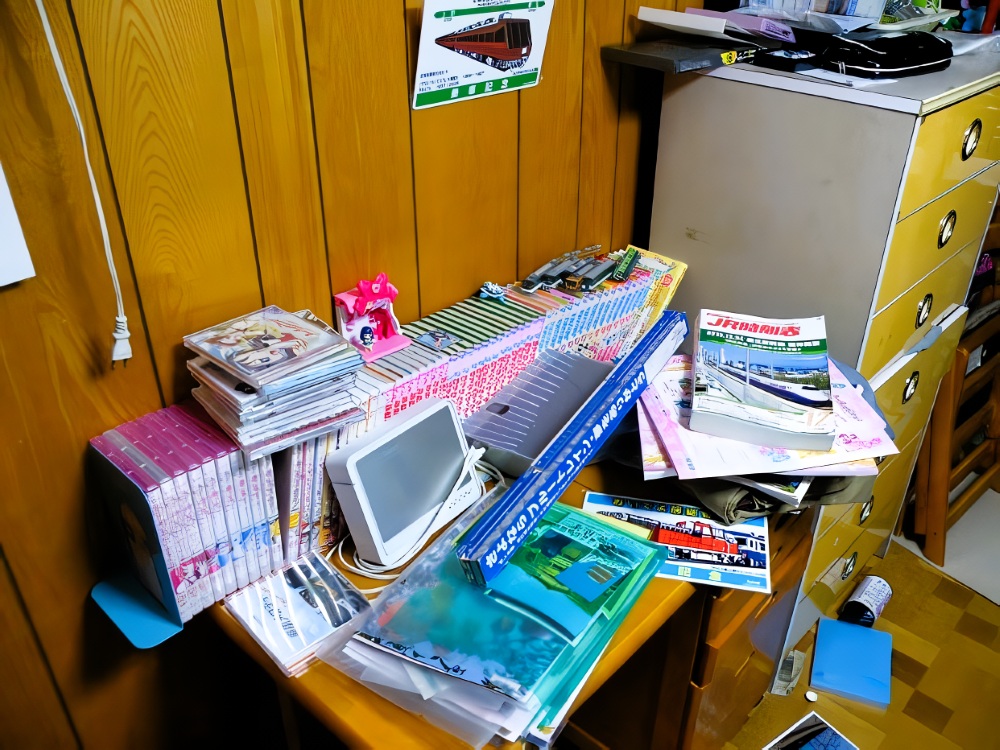 様子を見る為に2階へ上がってみると…、押入れから布団が飛び出してたり自分の部屋も机の上がメチャクチャ…。Nゲージを仕舞ってあった棚も扉が開いてが床に散乱(^-^;