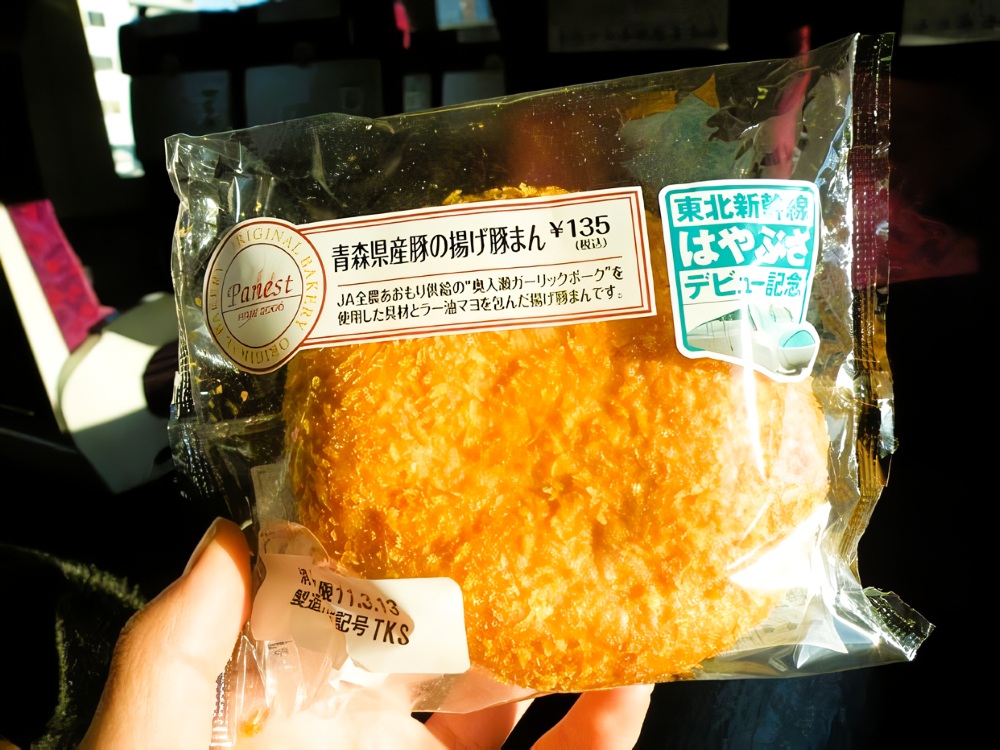 松戸・柏と過ぎるとちょっと車内が混み合って来ました…。とりあえず朝食にパンを🍴