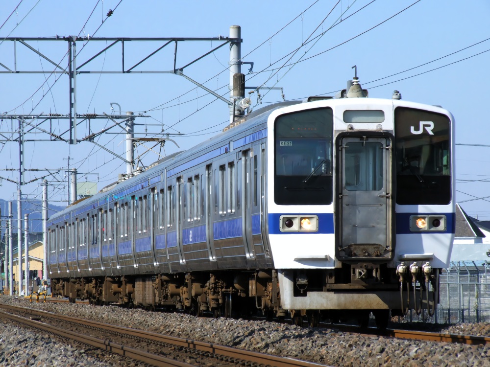 緑+緑の重連は嫌なんで黄色を期待しましたが…、緑のE653系が見えて来ました。緑同士の重連ですorz