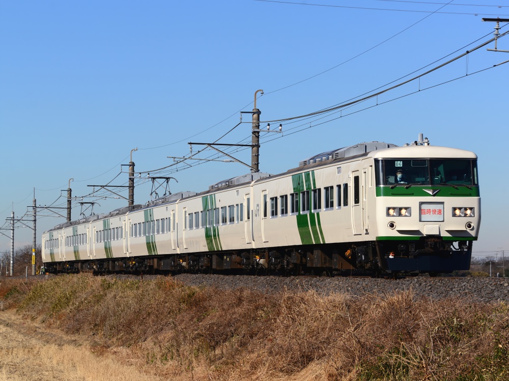 最初のお目当ては…185系6連による快速「早春成田初詣号」。