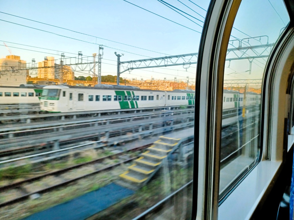 尾久の車庫には、先月の改正で運用離脱して疎開中の185系たちが沢山。