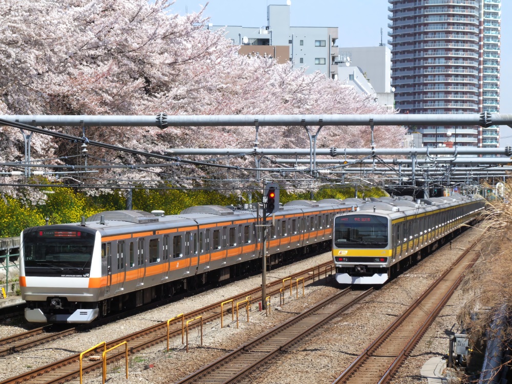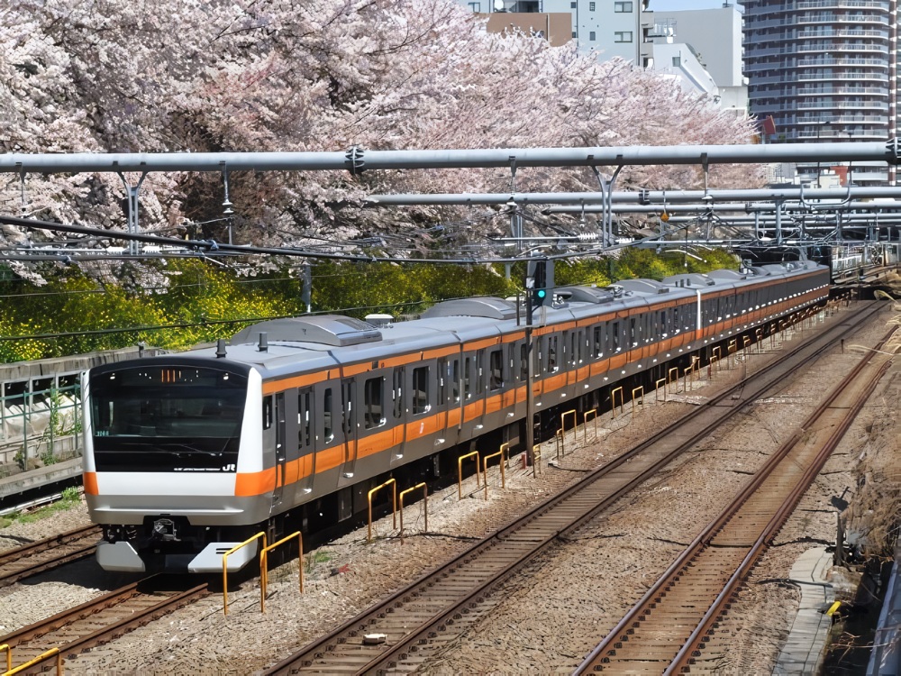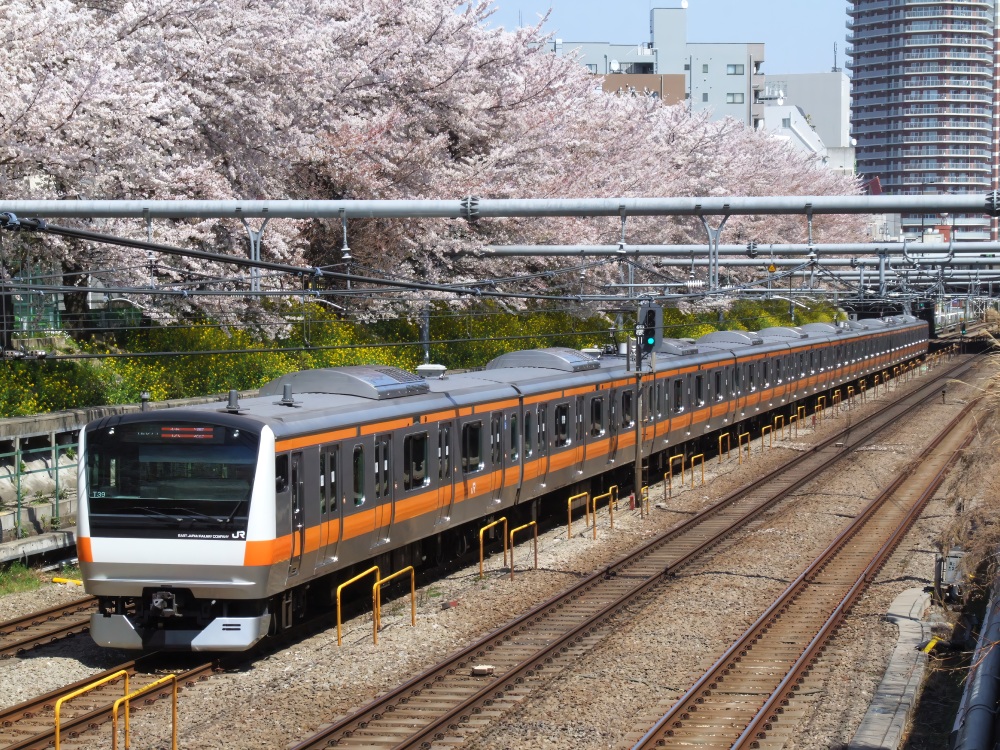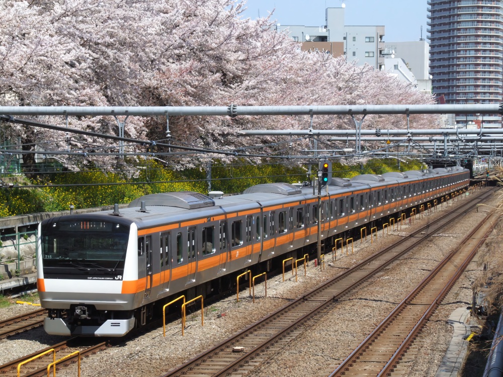 桜と中央快速線の組み合わせ、撮りたかったので満足です♪🌸