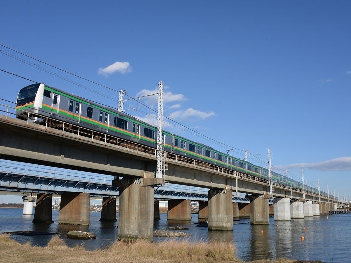 平塚駅前のマックで昼食を済ませ、駅から15分ほど歩いて相模川の鉄橋の撮影地へ。初訪問!✨