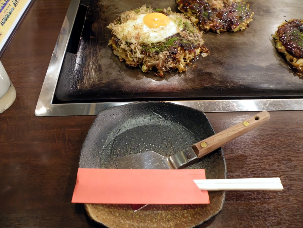 何とか空いてるお店を見付け、遅いですが夕食にお好み焼きを食べます🍴