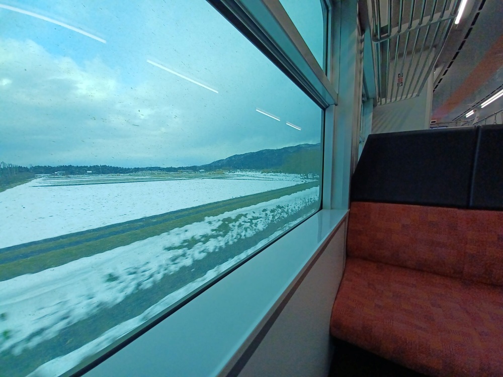 車内は綺麗ですが、窓が若干緑掛かってるのでちょっと景色見辛さがありますね…💦