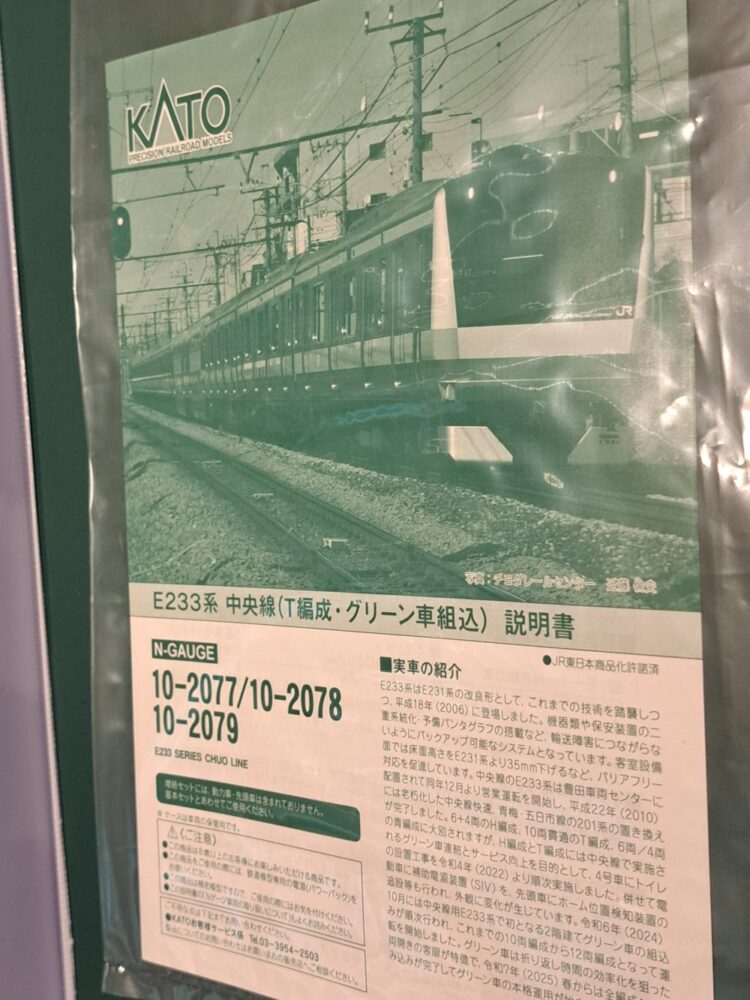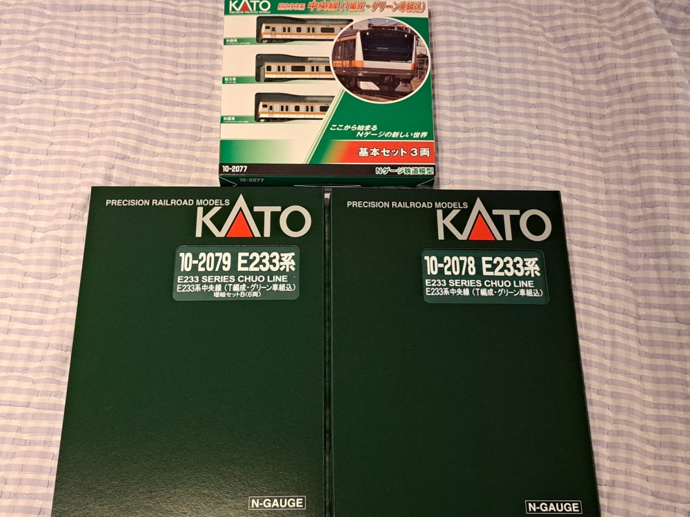 今回の記事は…再びNゲージ関連。販売されたばかりのKATO・10-2077、10-2078、10-2079…グリーン車付きの中央快速線E233系0番代の導入レポになります!🍀✨