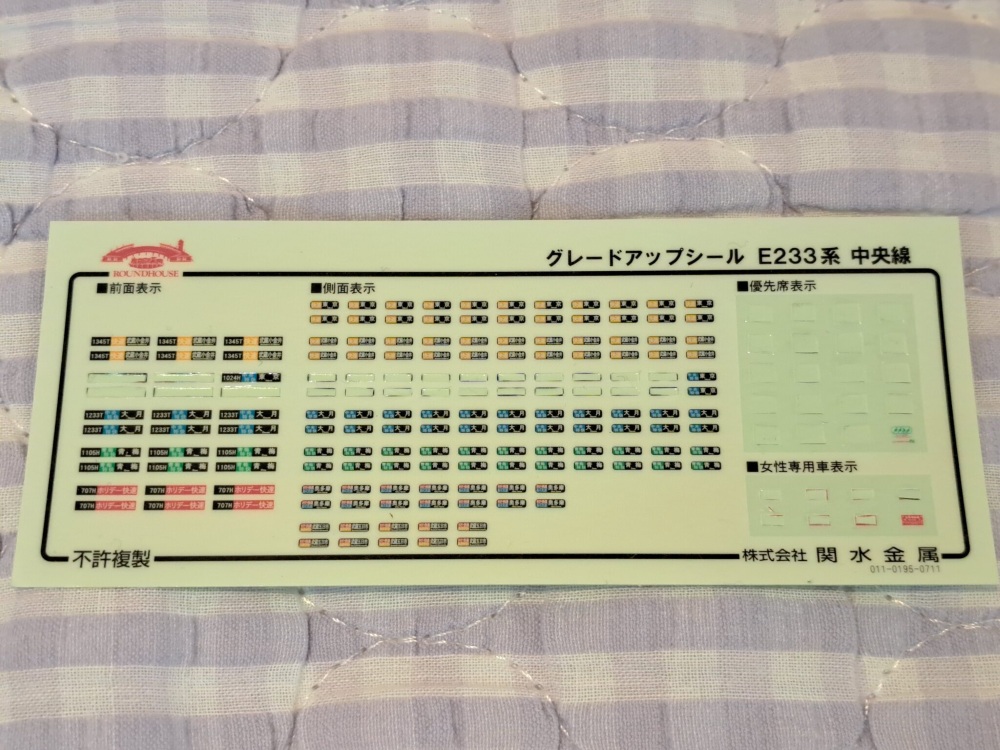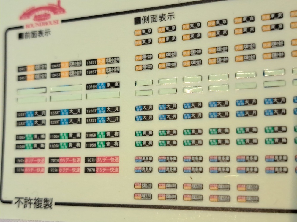 グレードアップシールは昔買ったのがあったので「中央特快 大月」にするか悩んでたんですが、側面のが1両分足りないっ…😖