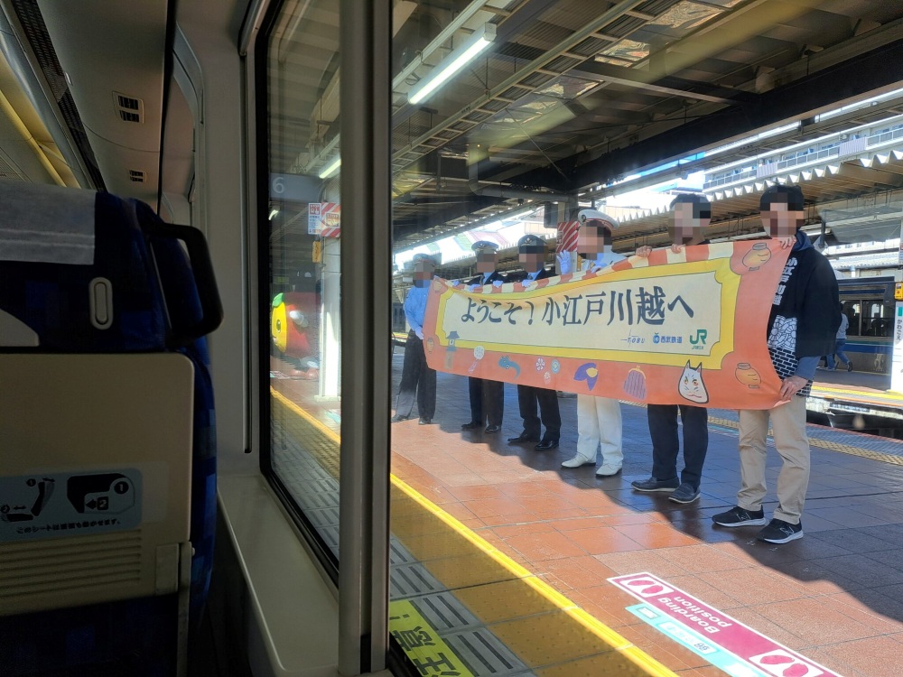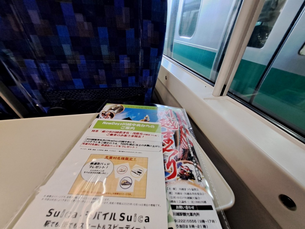 日進駅に停車中に、観光協会の方々が回って来られて鉄道関連のシールや川越まつりのパンフレットなどが入った袋を下さいました!✨