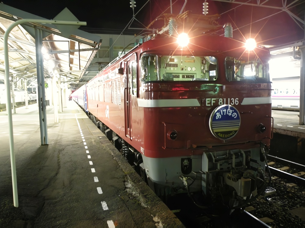 夜中に一旦目を覚ましたらちょうど長岡駅でEF81からEF64への機関車交換中で、汽笛が何度も聞こえました。