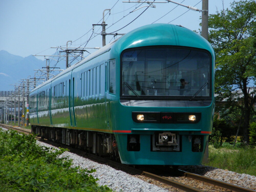 「全身緑色のお座敷列車があと〇分くらいで通ります!」