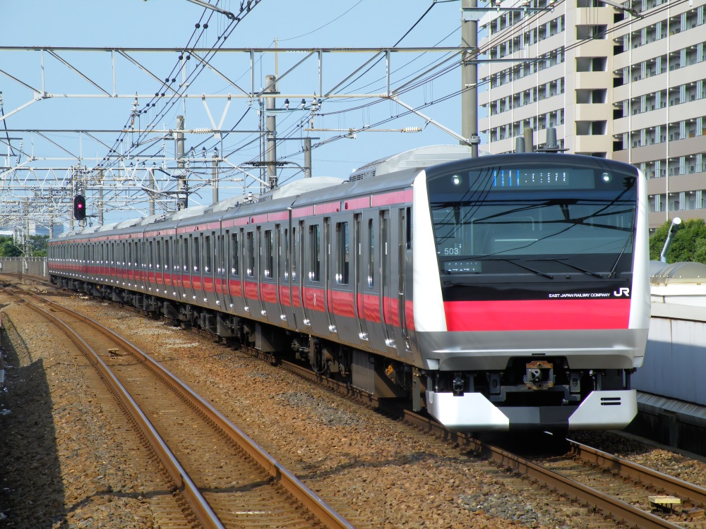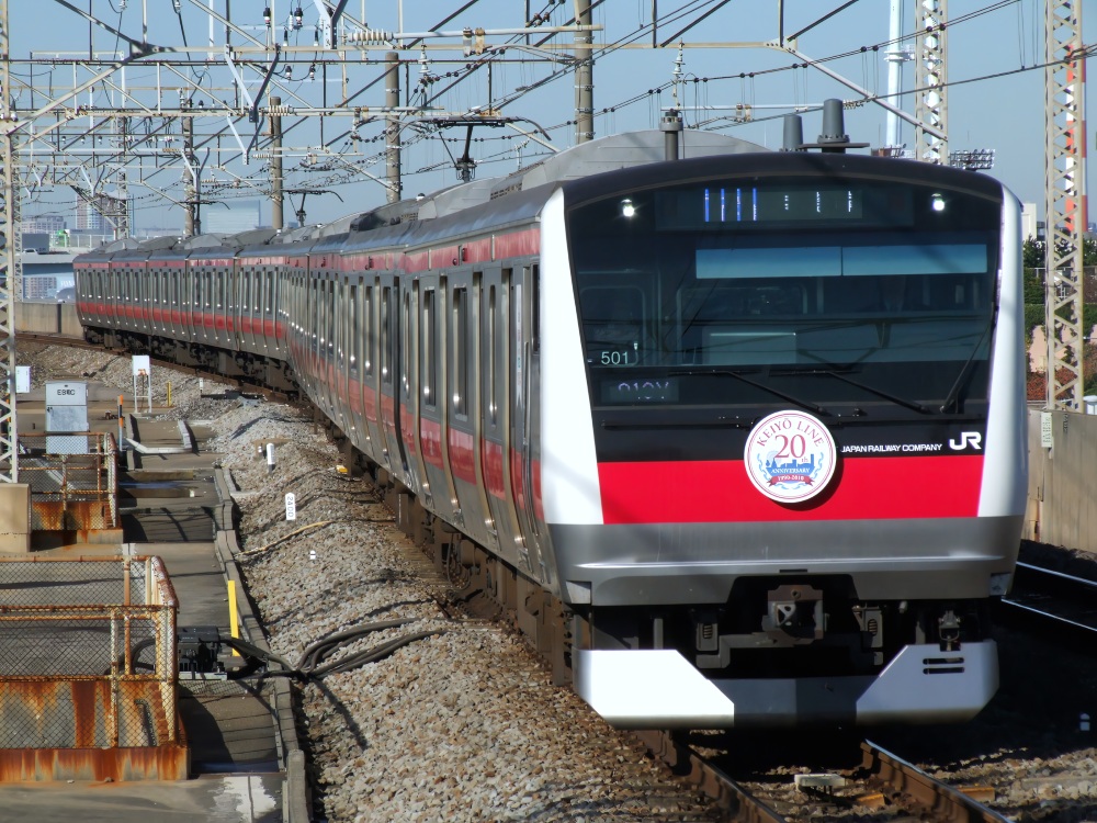 12月11日(木)の夕方、電気機関車に変わってここ1~2年で本格始動し始めた牽引車両「E493系」が、京葉線で活躍しているE233系5000番代の機器更新の為、トップナンバーのケヨY501編成を牽引してJR奥羽本線沿いにある秋田車両センターへ向かう為に京葉車両センターを出発しました。