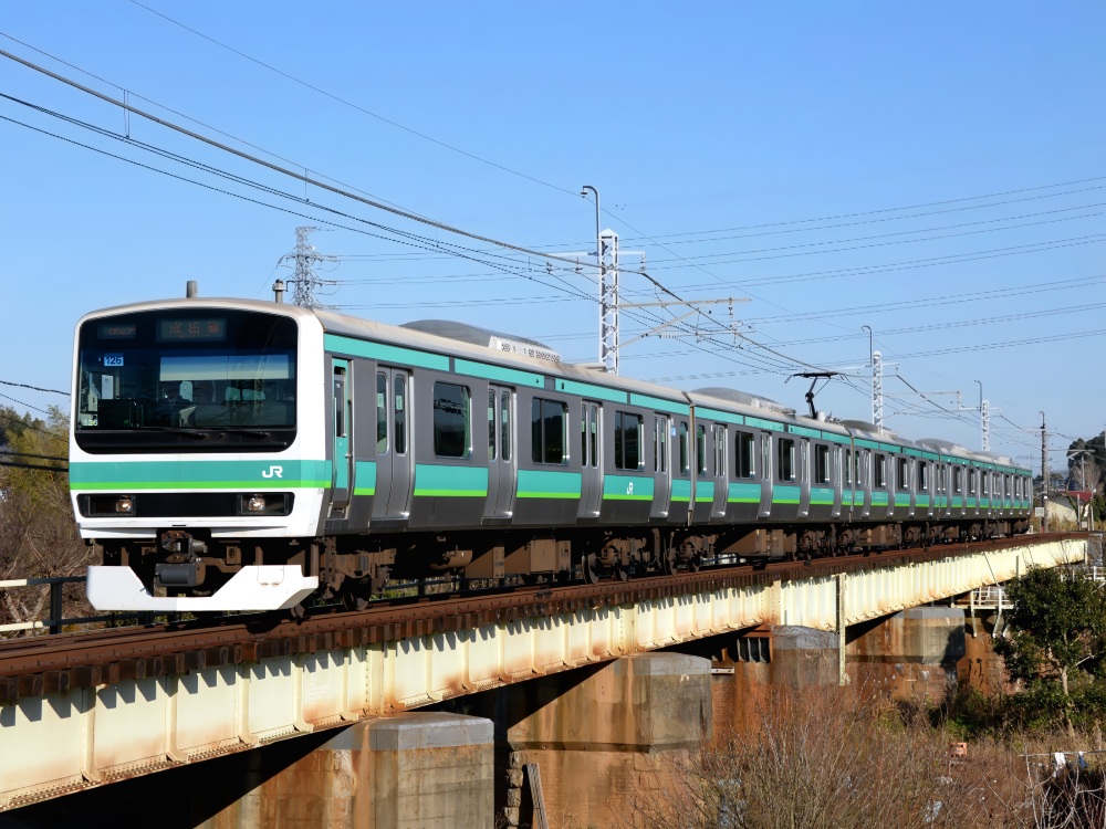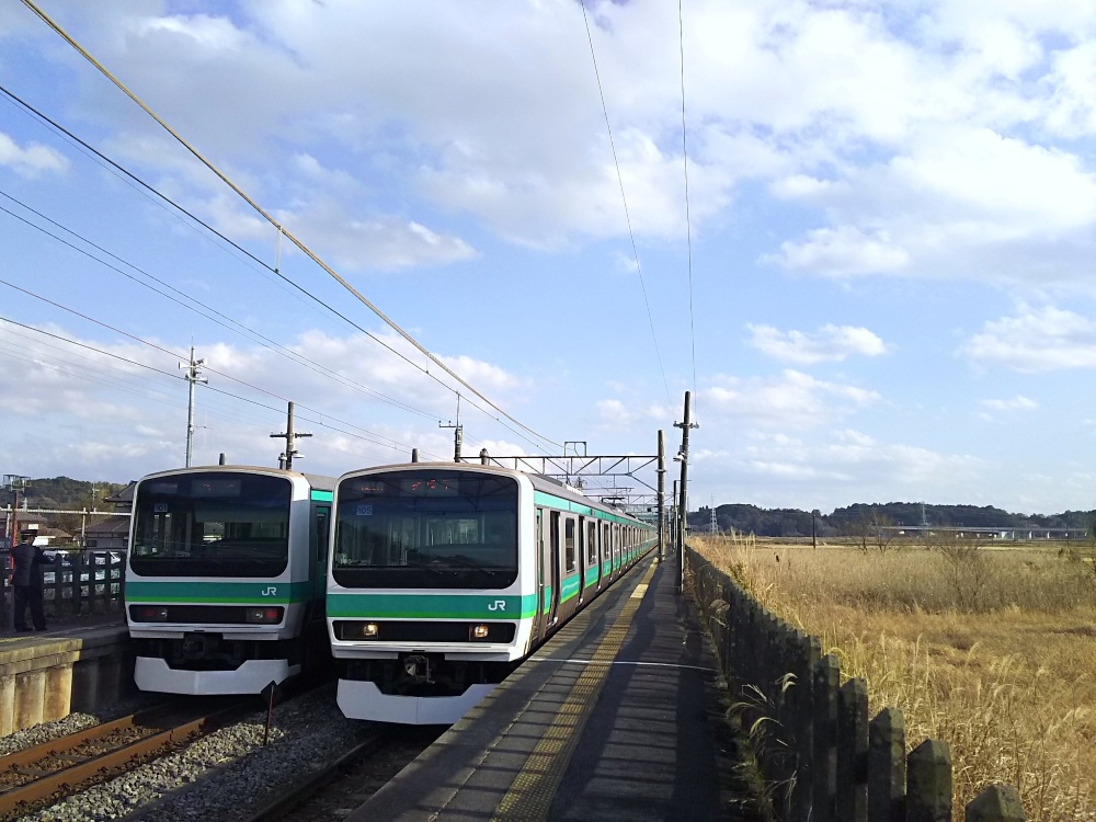 5連のE231系でも撮ろうと安食の鉄橋へ。