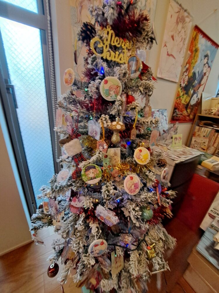 同作品のグッズを付けたクリスマスツリーを飾らせて頂いており、今年も作りました✨🎄