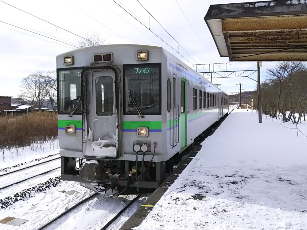 千歳線・札幌から来たキハ143の普通列車に乗って虎杖浜まで。