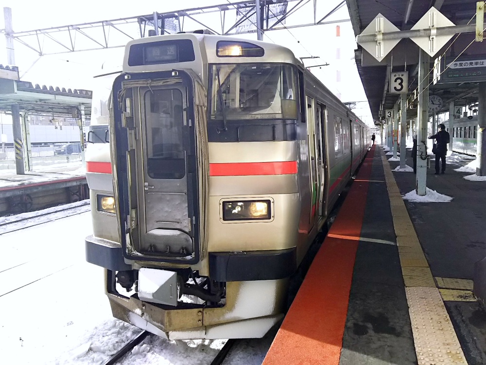 普通列車を乗り継いで南千歳へ~。