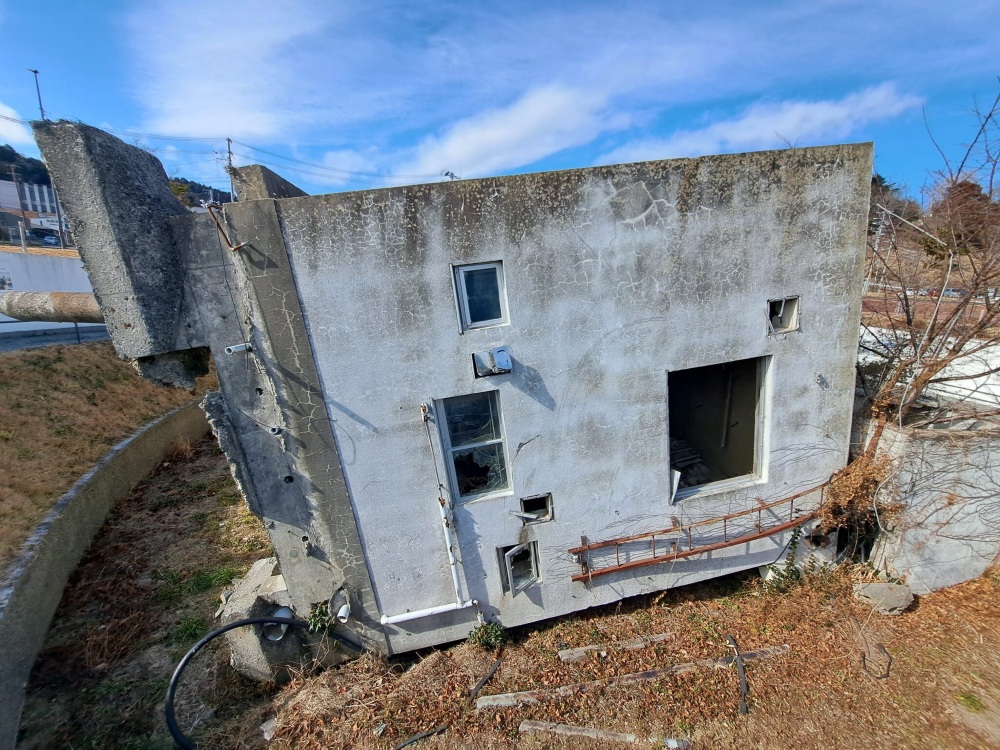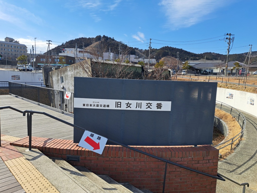 既に街全体が綺麗になっていて当時の面影はあまりありませんが、海の手前には震災遺構として旧女川交番の建物が残されております。