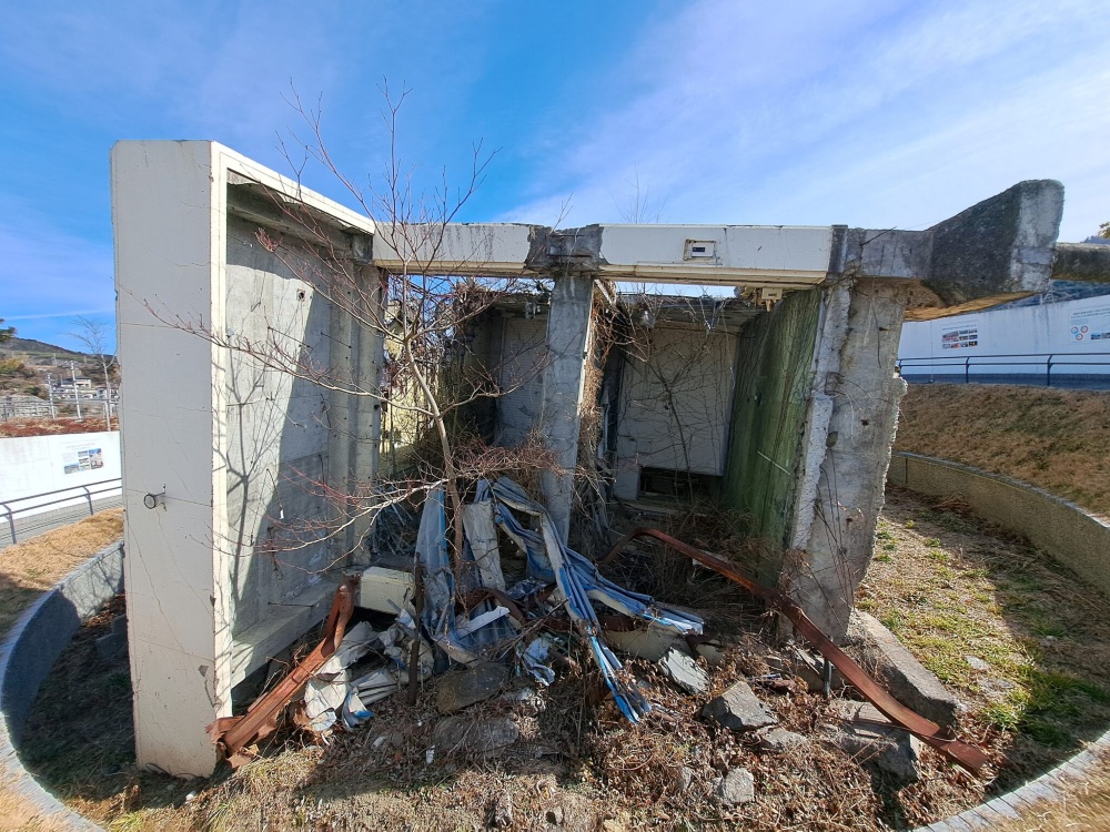 割れた窓や建物内の物もそのまま残されておりました。