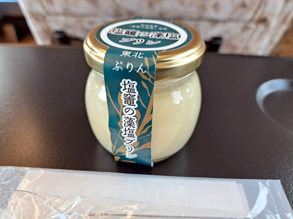 仙石線に入った所で車内販売が来たので、『塩竈の藻塩プリン』を購入!🍮