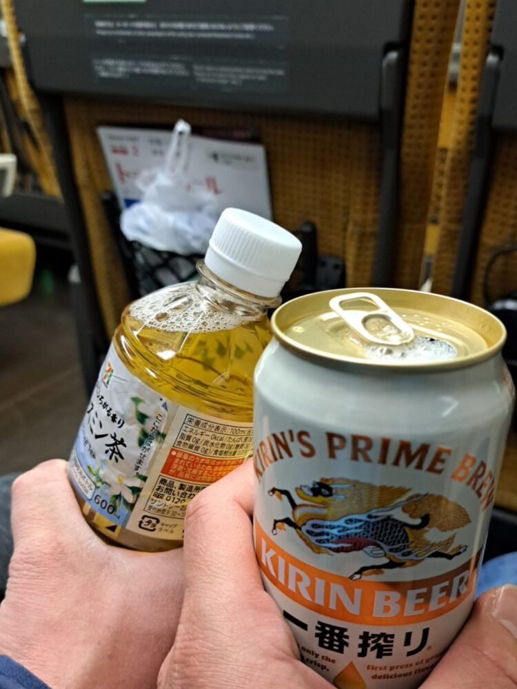 車内販売でビールなどを購入して呑み鉄🍺