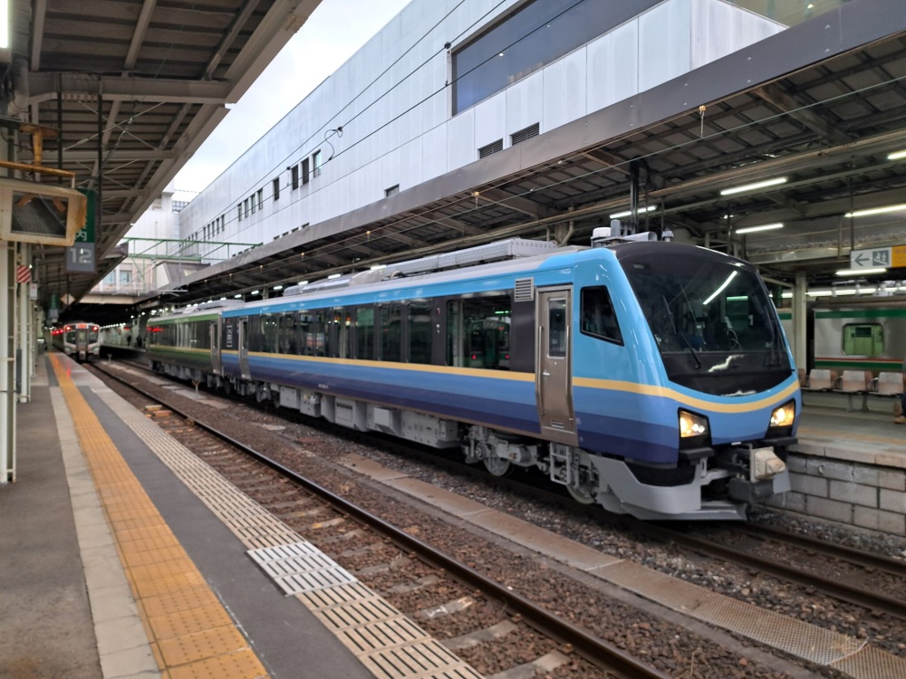 仙台駅に到着すると、8番線には特急「イブニングウェイ号」の姿が。