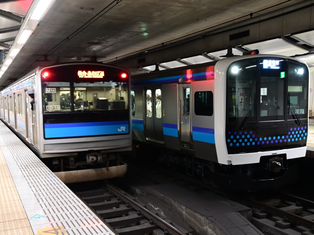 最初に来たE131系は被られてしまいましたが、205系と新旧並びが!!