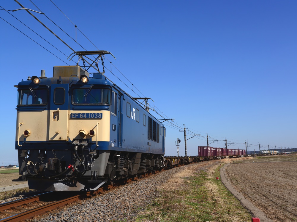 国鉄色のEF64-1038を先頭にやって来ました。