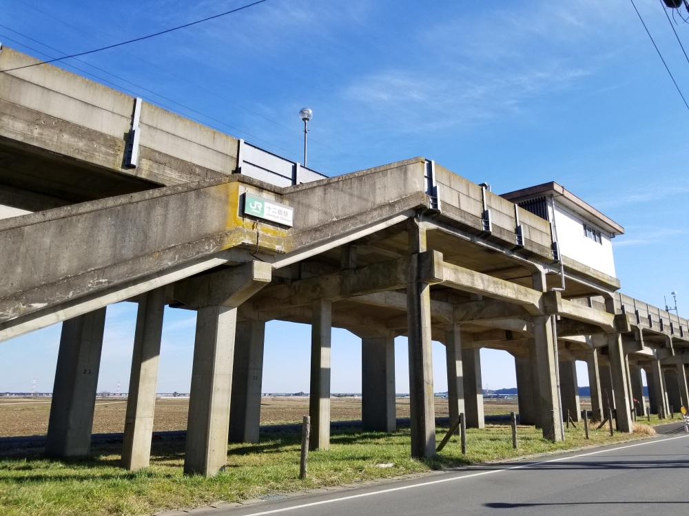 田園風景の中に建つ高架駅は斬新ですね!