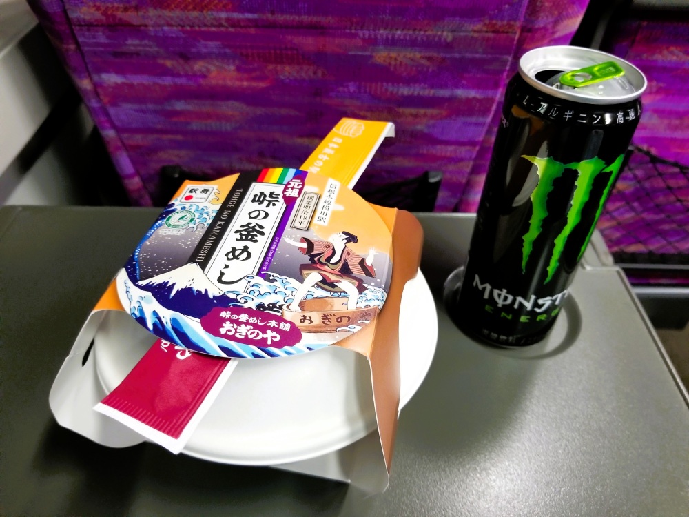 車内で東京駅で購入した”峠の釜めし”を食べながら🍴