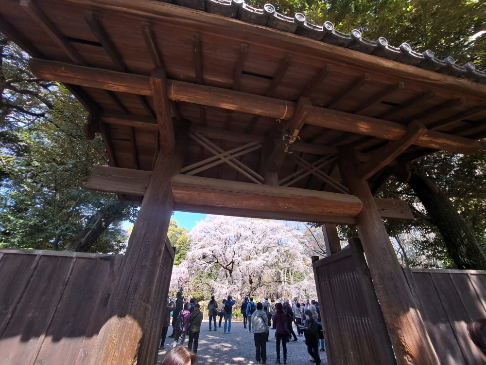 内庭大門をくぐると目に飛び込んでくる、圧倒的な存在感のしだれ桜。
