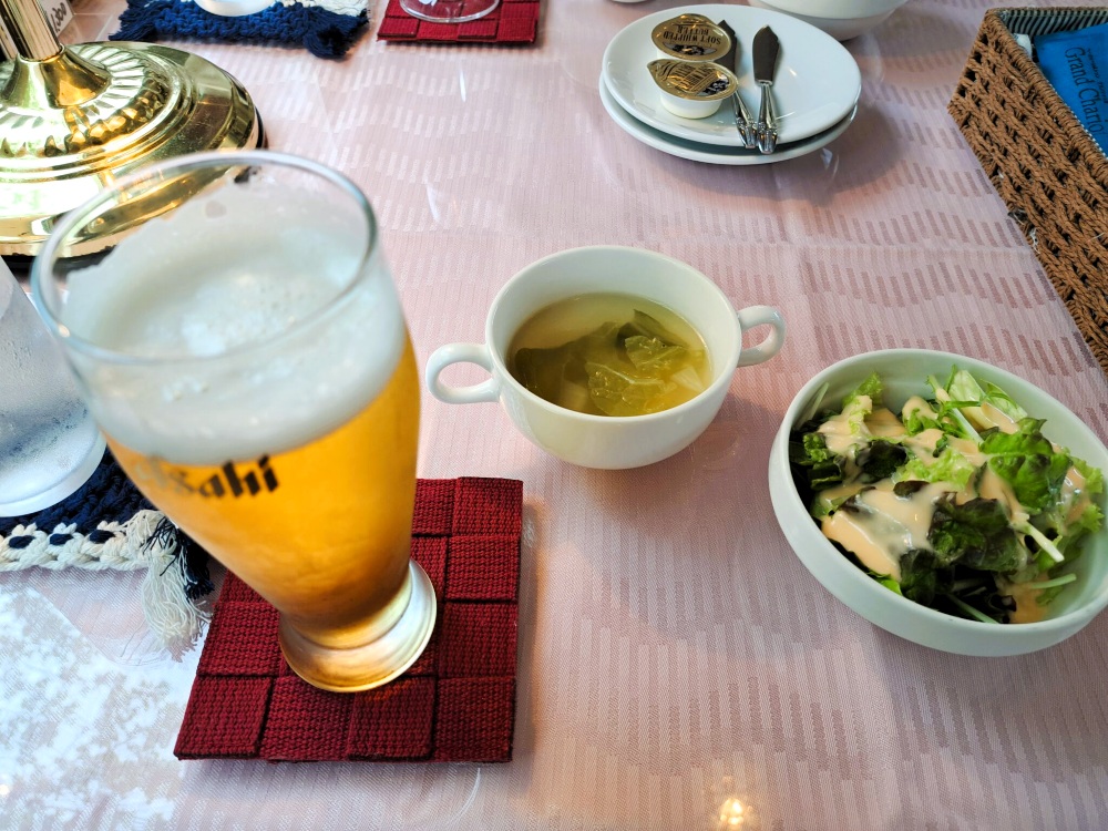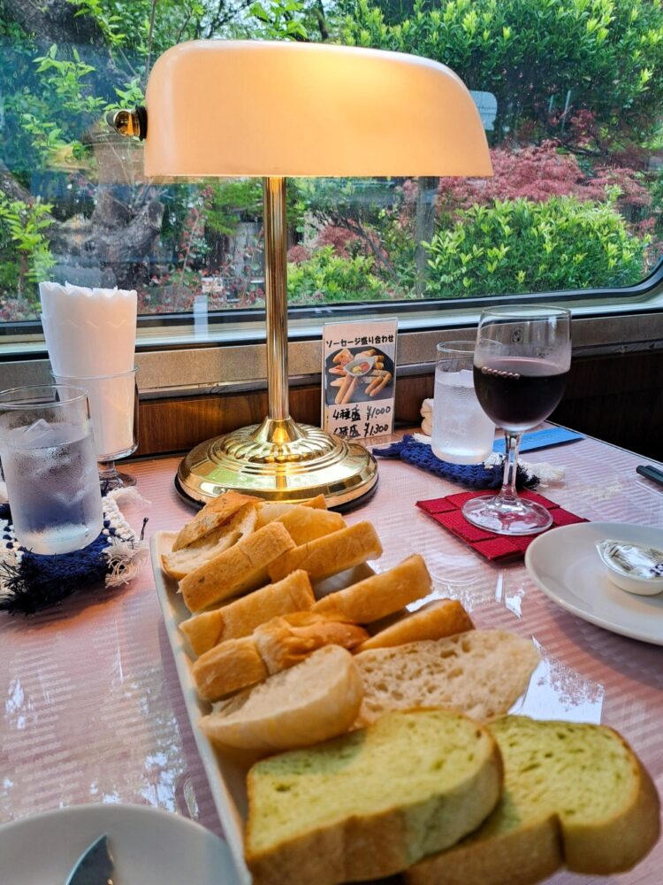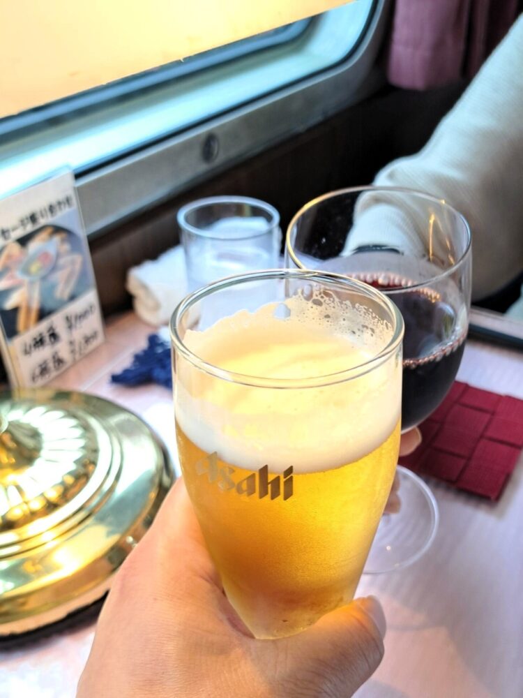 食堂車という特別な空間でありながら、お値段は¥2200ととてもリーズナブル。(ビールに変更したので+¥150)