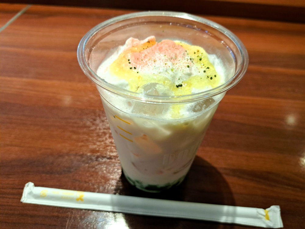 帰り際…お花見気分の流れでドトールさんで”抹茶わらび餅入りラテ”を☕🌸