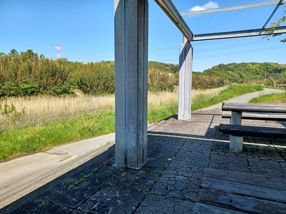 鉄橋の近くにベンチがあるのでひと休み。