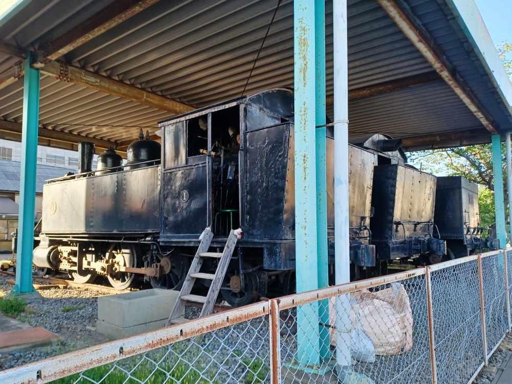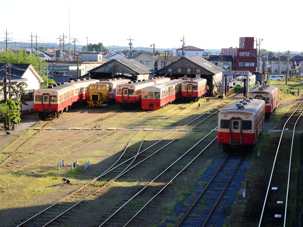 小湊鐵道の車庫の横を歩いてると、蒸気機関車のような車両が3台並んでいました!