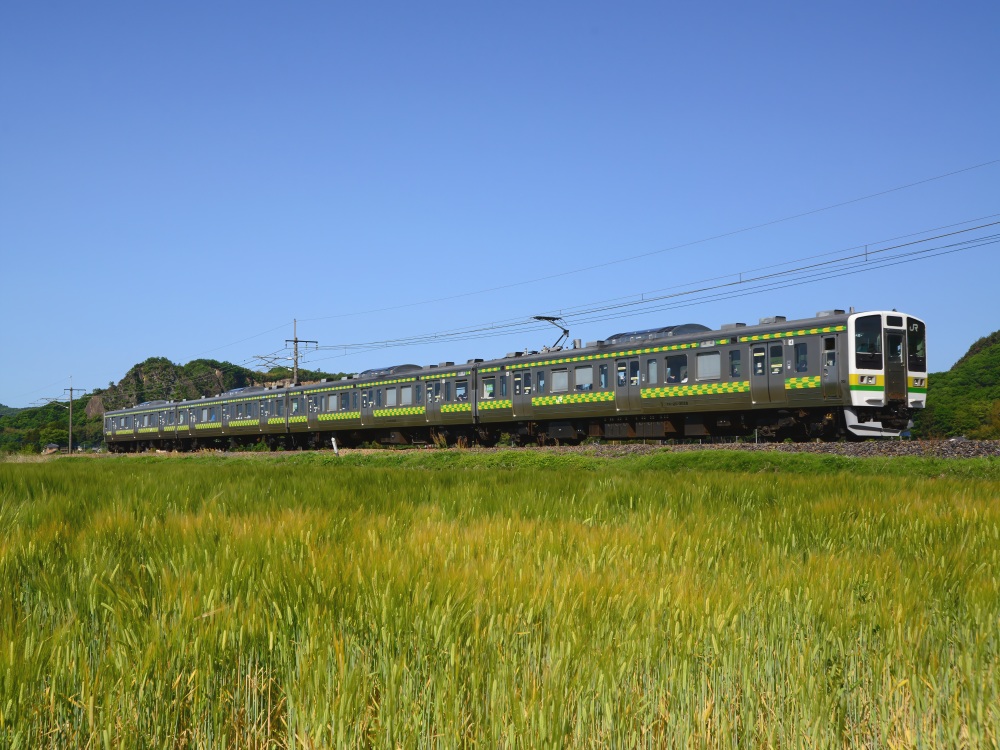 とりあえず後ろから矢紺色の211系が来るので狙います。