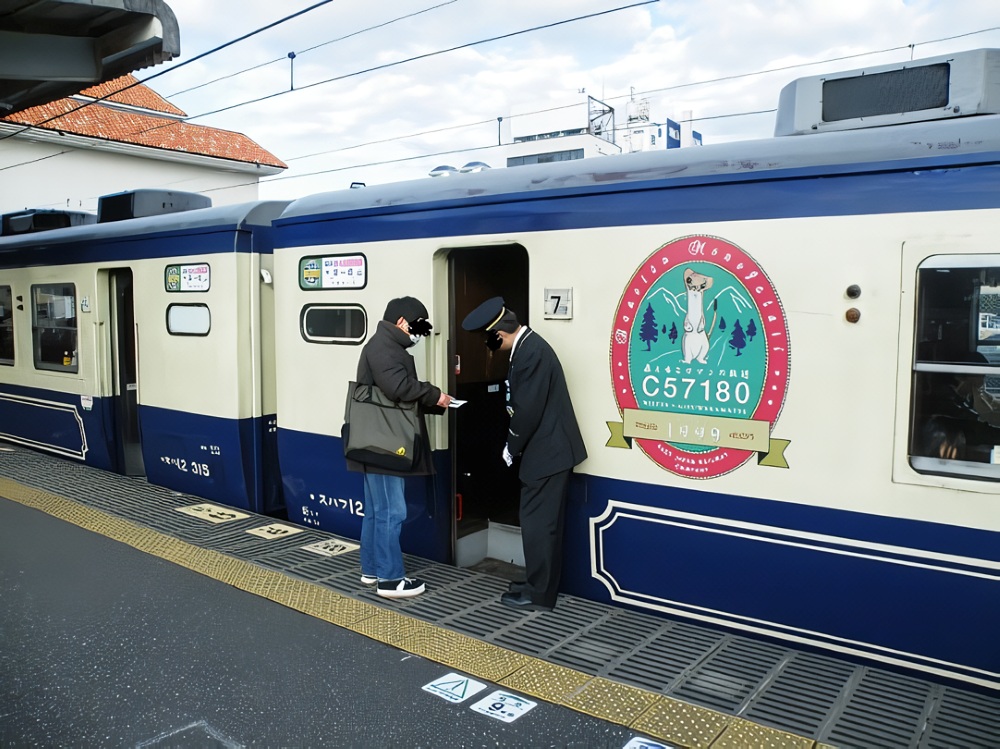 各号車のドアに車掌さんが立ち、乗の際に指定券の確認を行っていました。