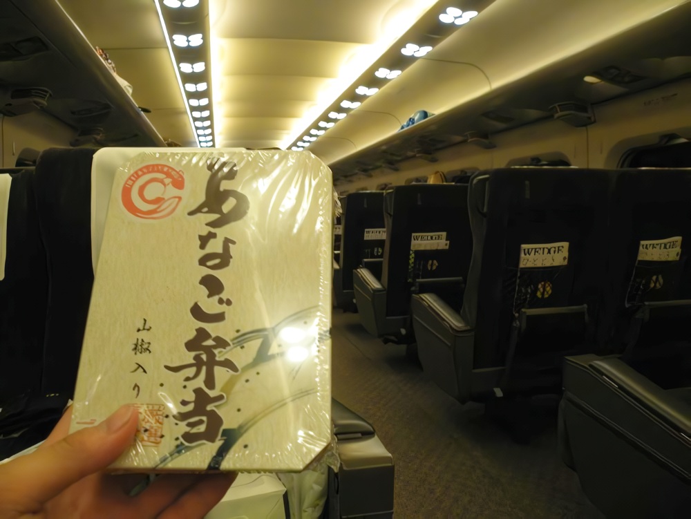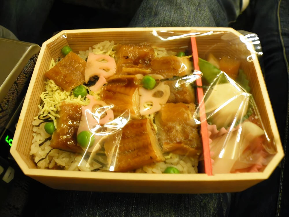 しばらく景色を眺め、京都を出た辺りで夕食に~。車内はまぁ空いてます。